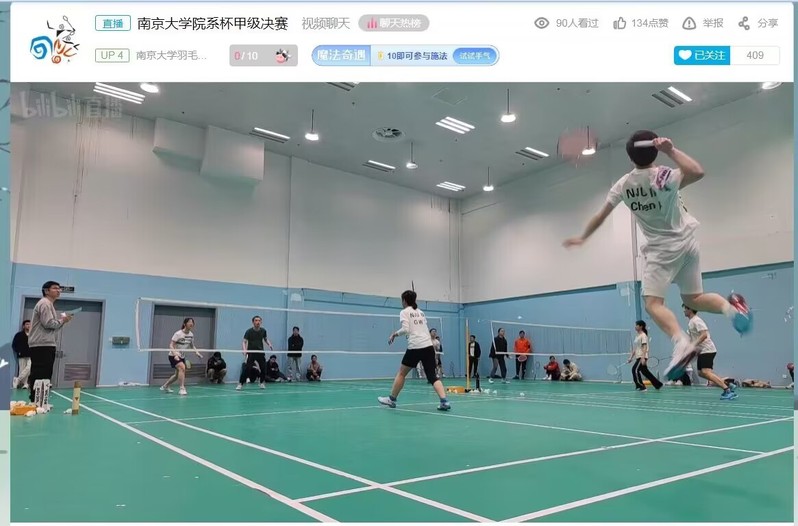 后面这个飞在天上爆扣对面的男人就是陈教。羽队的队长是饮水机管理员刘博,和王珺、徐欣源并称吉祥三宝。
