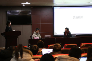 在双方召开校企座谈会的同时,“职面当下,赢在未来”大学生求职辅导讲座在410报告厅举行。讲座由学院院长助理、研究生辅导员刘千里主持,导师庞瑶及其同事为同学们现场进行简历制作、面试求职的实战演练和辅导,百余名信管毕业生和准毕业生积极参加学习,现场气氛热烈。庞瑶老师从招聘角度为同学们讲授了简历制作的基本技巧和注意事项。她着重讲解了好简历的金标准、面试注意点,尤其针对令同学头疼的问题“没有实习经历怎么写简历”做了生动的讲解。她还结合实际工作经验,列举了很多具有启发性的例子,案例教学令人印象深刻。在有趣的实战训练环节,她邀请了两位同学上台模拟演练,并进行现场点评,在对同学予以肯定的同时也提出了建议,如尽量避免重复措辞,变换表达方式等。讲座得到了同学们的广泛好评。