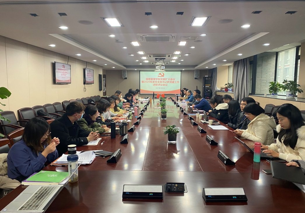 为贯彻落实《中国共产党支部工作条例(试行)》,开展“对标争先”建设,推进“支部建设落实年”有关要求,推动全面从严治党向基层延伸,2021年1月5日下午,信息管理学院党委召开2020年度基层党支部书记述职评议会。校党委组织部束方银老师到会指导,学院党委书记姜迎春、院长孙建军等党委委员、专职组织员、党支部书记二十余人参加会议。述职评议会由学院党委副书记罗萍同志主持。