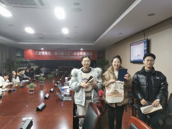 在陆泉老师结束精彩总结后,孔嘉同志负责开展了本次党史情报史知识竞赛活动。经过前期积极动员,本次知识竞赛活动,共吸引了十六支队伍参赛,其中武大十支,南大六支。在比赛过程中,参赛队员热情高涨,积极踊跃答题,在经历近一小时的激烈角逐后,比赛落下帷幕。本次比赛南大武大各设一个一等奖、两个二等奖和三等奖。赛后,范涛和吴乐艳同志分别为荣获一等奖的小队颁发纪念奖品。