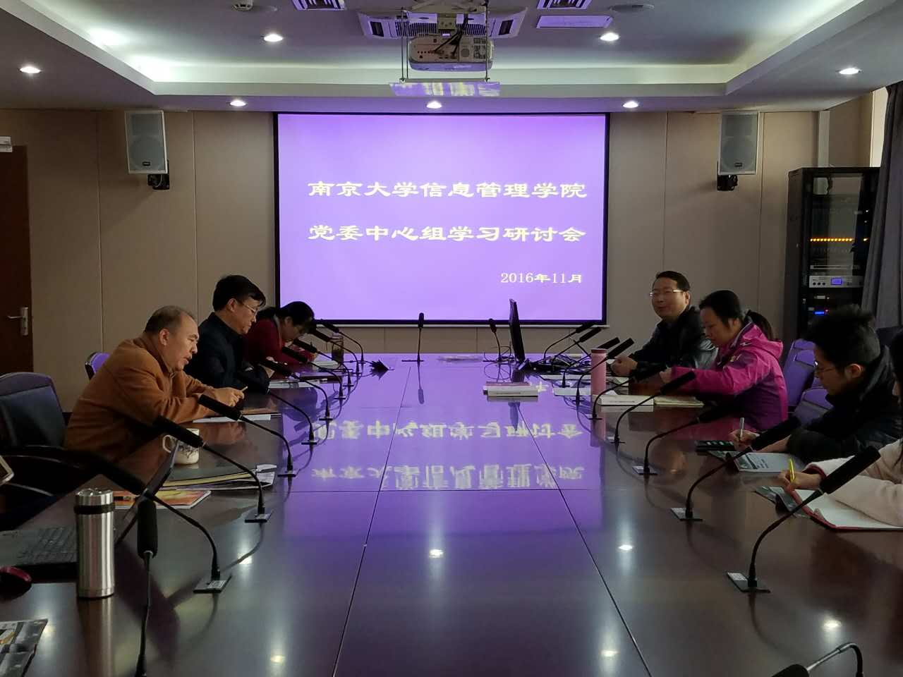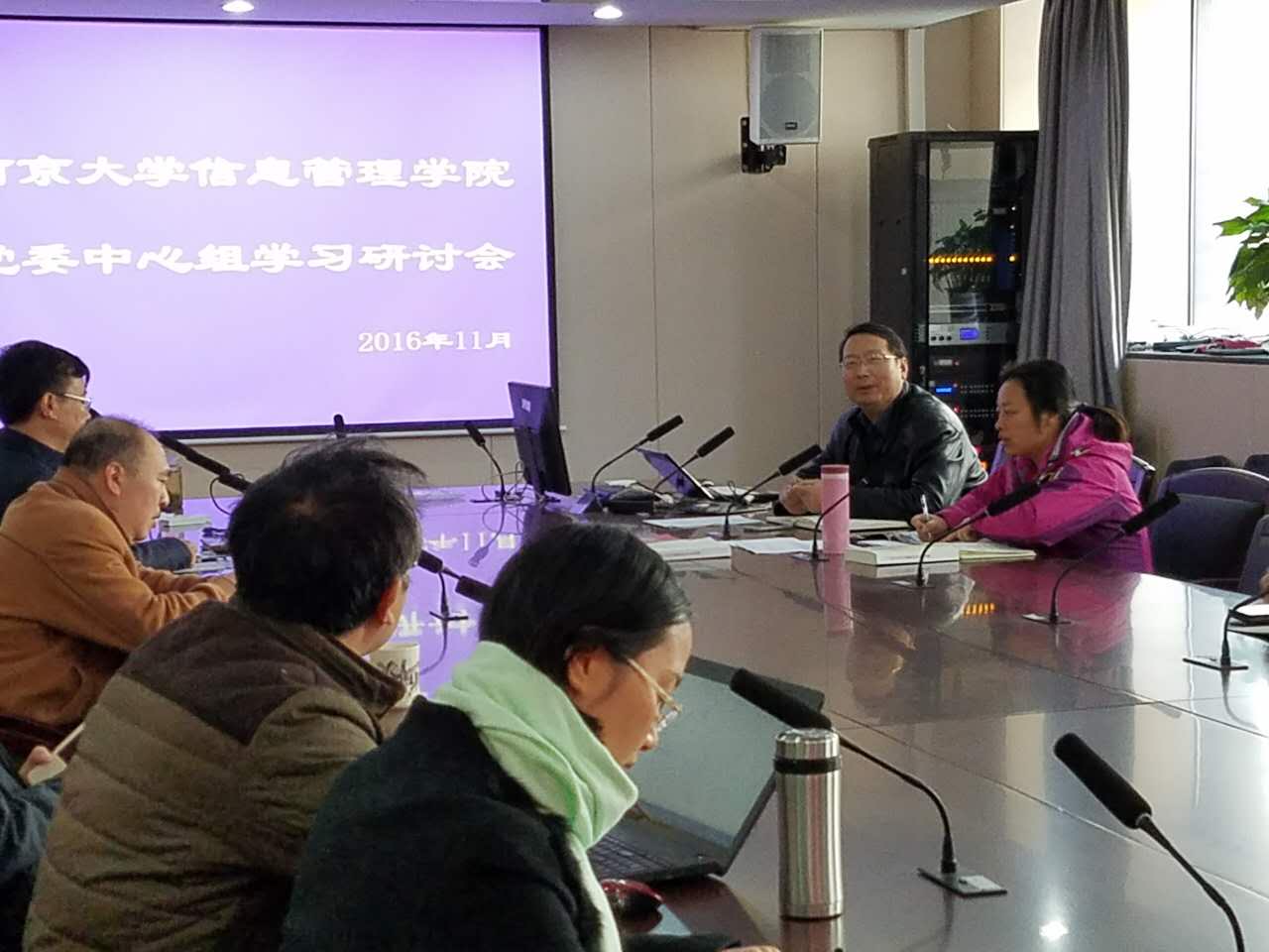 为深入开展“两学一做”学习教育活动,切实改进和加强基层党组织建设,进一步提高院系党委凝聚力和战斗力,信息管理学院党委于11月28日举行中心组学习研讨会,集中学习习近平总书记讲话等重要文件精神。学院党政联席会成员、系主任、分工会主席、办公室主任、教职工党支部书记、辅导员及行政管理人员等参与学习。学习活动由学院党委书记江莹同志主持。
