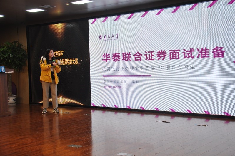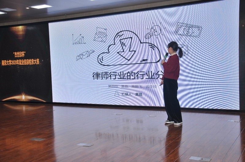 12月26日,“杰世欣杯”南京大学2020年就业信息检索大赛决赛在仙林校区众创空间路演大厅拉开帷幕。从初赛中脱颖而出的15名优秀选手,通过团队赛、个人赛两个环节角逐最后的奖项。比赛聚焦大学生职业生涯规划、就业政策、就业环境、求职技巧等信息素养能力提升,着力考察参赛选手的就业信息检索、组织与分析能力,展现了南大青年学子的理想追求和实践能力。校党委学生工作部王曦曦老师,校学生就业指导中心操琳琳老师、信管学院潘雪莲老师和刘千里老师担任比赛评委。
