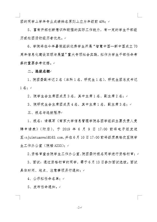 关于公开选拔2019-2020学年南京大学信息管理学院 各团学组织主要负责人的通知