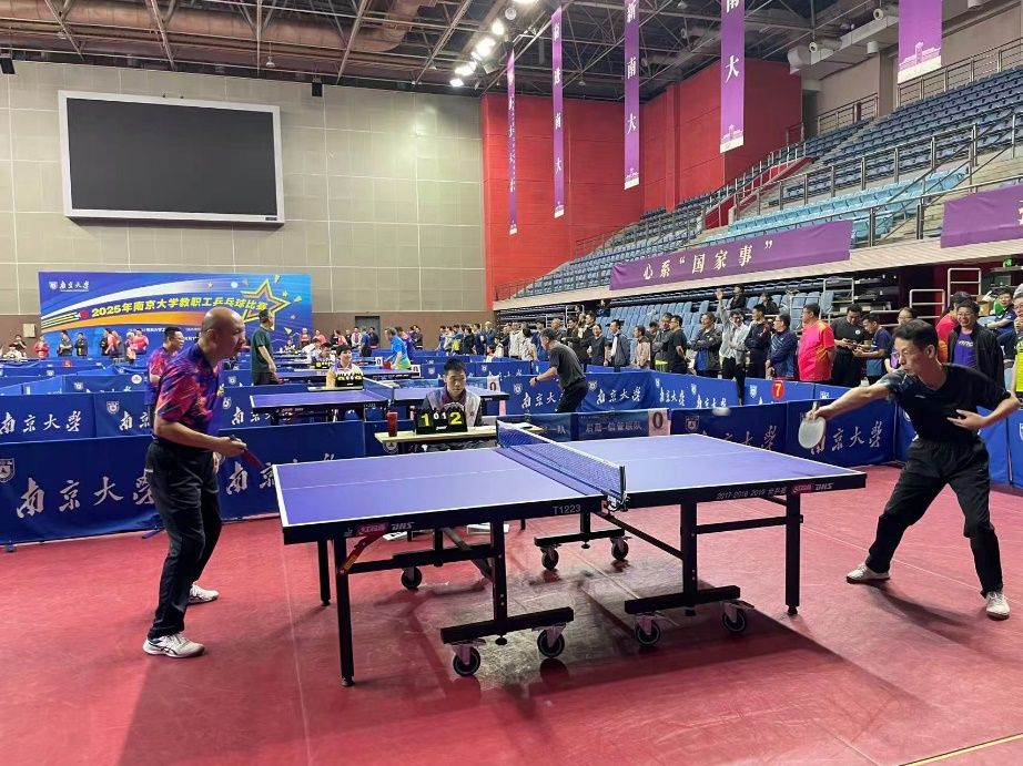 2025年10月19日,南京大学教职工乒乓球大赛在仙林校区方肇周体育馆圆满举行。信息管理学院与后勤集团联队以出色表现斩获亚军,继2024年获得季军后再创历史佳绩,实现"一年一台阶"的稳步提升。
