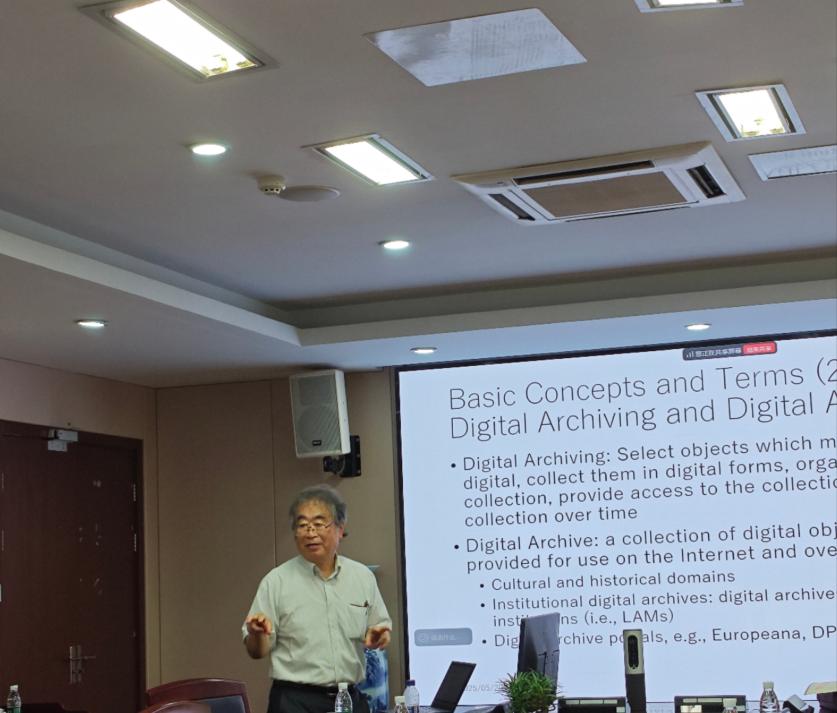 元数据是组织、管理和发现信息的关键工具,它不仅支撑着图书馆、档案馆和博物馆等“文化记忆机构”的数字资源管理工作,更在文化遗产保护、数字人文研究中发挥着基础性作用。2025年5月20日上午,日本筑波大学图书情报与媒体学院杉本重雄(Shigeo Sugimoto)教授应邀做客南京大学信息管理学院名家讲坛第6期,并作题为“Metadata Models for Digital Archiving: What cultural entities are we describing?”的精彩学术报告。本次学术报告由南京大学信息管理学院朱庆华教授主持,于信息管理学院211会议室举行,并通过腾讯会议在线开放。