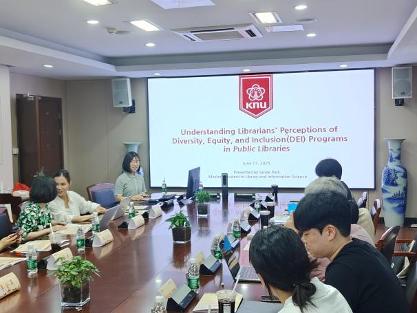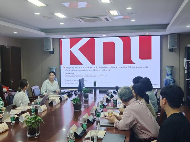 在青年学术论坛环节中,来自韩国国立庆北大学的研究生Sango NaJuhee ParkDongyun Jeong以及Inyoung Jung和来自南京大学信息管理学院的研究生李金昊、张晓宇、杨杰以及王佳鑫分别进行研究展示,双方就信息组织、图书馆发展、信息素养、档案建设等多个研究问题进行深入的交流探讨。