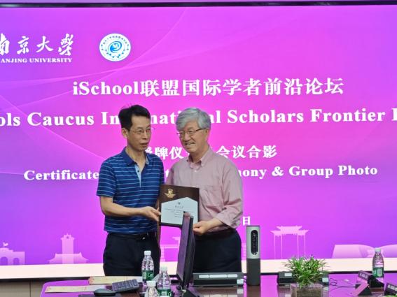 随后马进军书记为Sam Oh教授颁发了南京大学国际高级学者聘书,并表明南京大学信息管理学院作为iSchool的一员,始终秉持开放、合作、共赢的理念,积极搭建学术交流与合作的平台,此次授牌也代表我校与国际信息学界的合作取得新的成果。