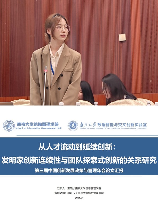 91暗网 2022级本科生左英姿,王硕,唐佳怡的三篇论文被会议录用。三位同学分别在分论坛四关键核心技术突破作题为《知识网络视角下的前沿交叉主题识别研究--以生成式人工智能领域为例》、《从人才流动到延续创新:发明家创新连续性与团队探索式创新的关系研究》、《企业创新路径演化中的关键人工智能技术主题识别--基于技术不连续性视角》的论文汇报,获得了在场学者的高度关注,并围绕数智化创新、科技创新、技术机会识别等议题展开了热烈讨论。