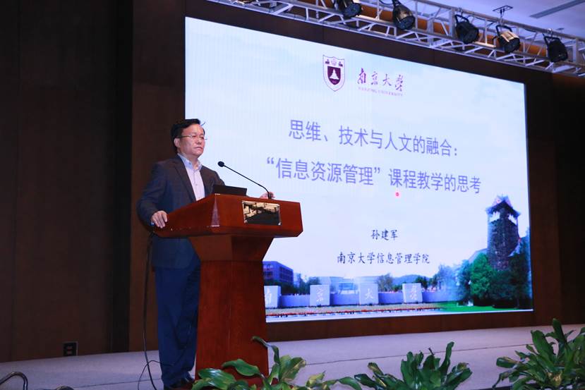 南京大学信息管理学院孙建军教授做了题为“思维、技术与人文的融合:‘信息资源管理’课程教学的思考”的分享。孙教授结合思维、技术和人文的融合分享了其对信息资源管理课程教学的思考,强调基于科技大数据的知识发现和数据挖掘以及何如应对其带来的挑战,并提出数据驱动的新型研究范式以支撑人文社会学科内涵发展。