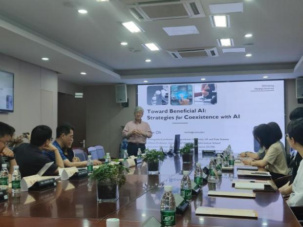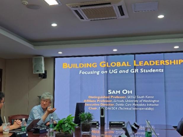 A211顺利举办。本次讲坛特邀韩国成均馆大学资深教授Sam Oh,围绕青年学者成长之路、人工智能发展和全球学术领导力等主题,与我校师生进行了深入交流与分享。本次讲坛共设三个专题讲座,分别由南京大学信息管理学院赵月华副教授、副院长康乐乐教授以及羊剑楠助理教授主持。