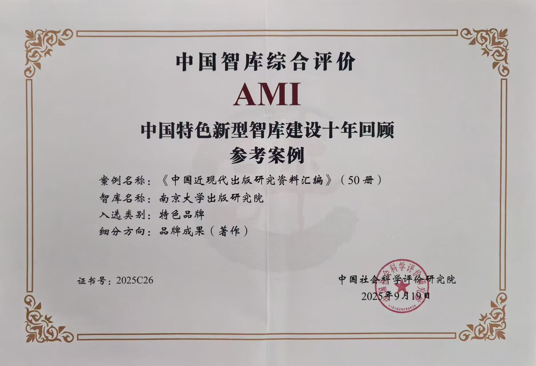 南京大学出版研究院入选“2025年AMI智库入库单位”并获中国特色新型智库建设十​年回顾参考案例