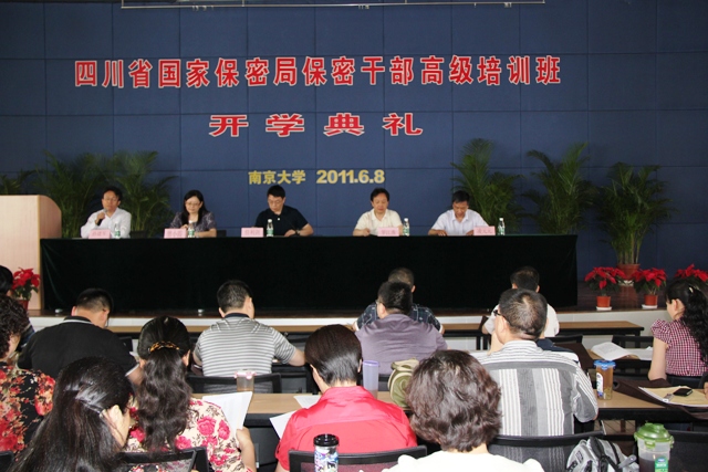 日上午,四川省保密局保密干部高级培训班开学典礼在逸夫管理科学楼举行。南京大学党委副书记任利剑、南京大学全国干部教育培训基地办公室主任凌元元、四川省保密局宣法处处长曾小霞、江苏省保密局原副局长,调研员罗江淮等出席了仪式。仪式由南京大学信息管理系主任,南京大学国家保密学院副院长孙建军主持。