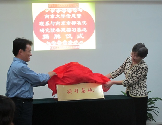 2010年10月18日,南京大学信息管理系实习基地揭牌仪式在南京市标准化研究院举行。信息管理系主任孙建军、党委书记江莹、党委副书记戴咏梅、南京市质量技术监督局副局长周黎丽、南京市标准化研究院院长汪浩等出席了此次仪式。孙建军主任和汪浩院长共同签订合作协议书。