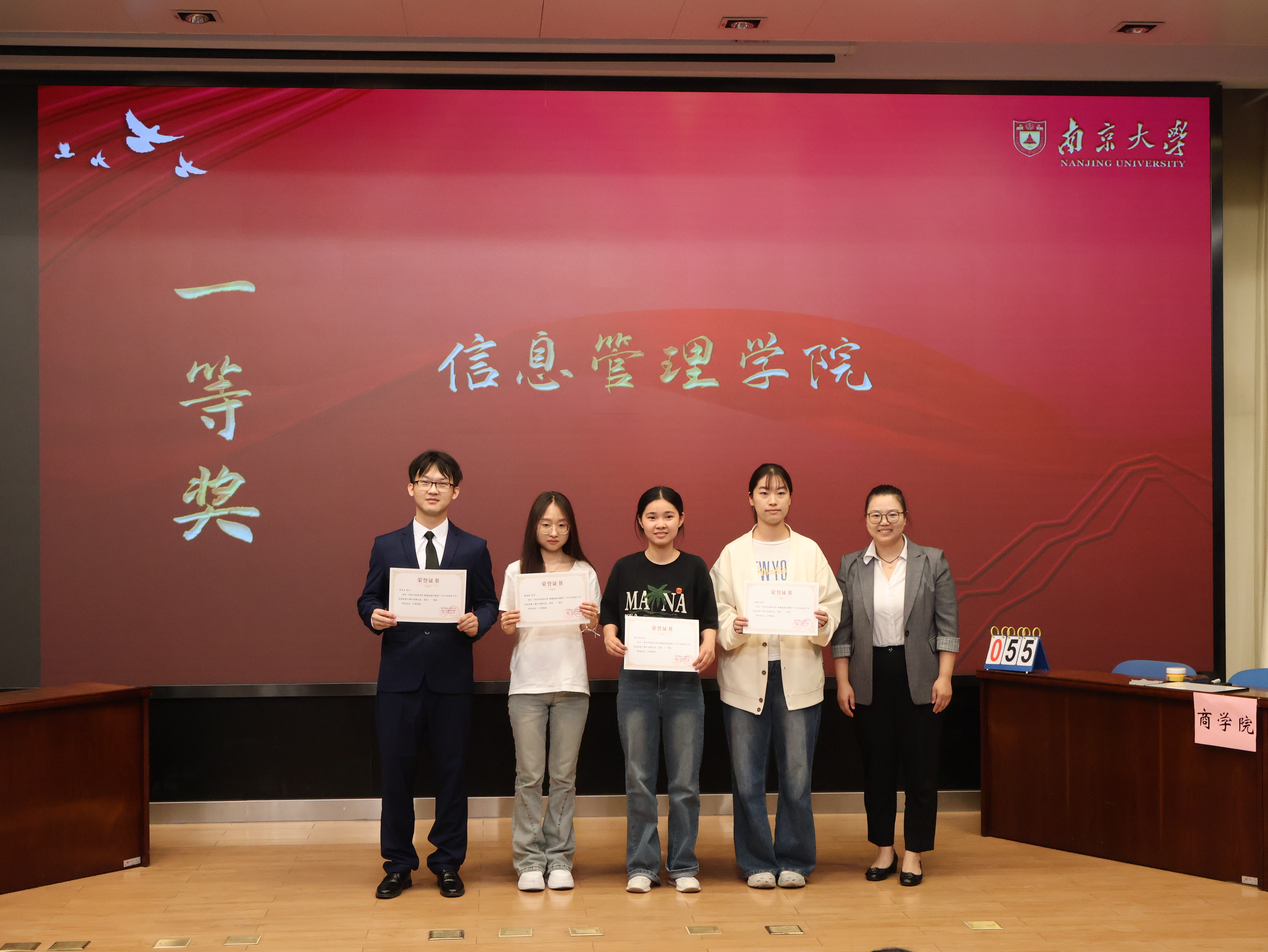 经过两轮比赛的角逐,商学院、生命科学学院、行知书院三支队伍获得团队三等奖,历史学院、秉文书院获得团队二等奖,信息管理学院获得团队一等奖,嘉宾评委为获奖团队颁奖并与所有参赛选手合影留念。