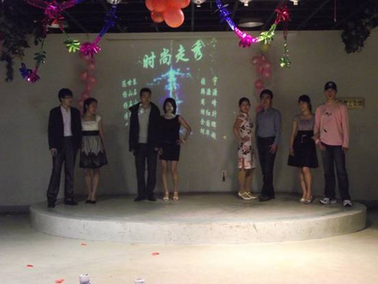 罗萍老师首先为晚会致辞,她希望同学们在日常学习生活中能够有更多的沟通、互助和分享,这样“快乐才会翻倍,生活才会更精彩”。晚会中既有《钻石》、《K歌之王》等流行歌曲的倾情演绎,还有《阳关三叠》这样雅致清新的古琴演奏,更有创意佳、抓眼球的时尚走秀节目,穿插其中的还有引发笑声不断的“我来比划你来猜”、“影视配音模仿”、“‘瞎子’背‘瘸子’”等互动游戏。